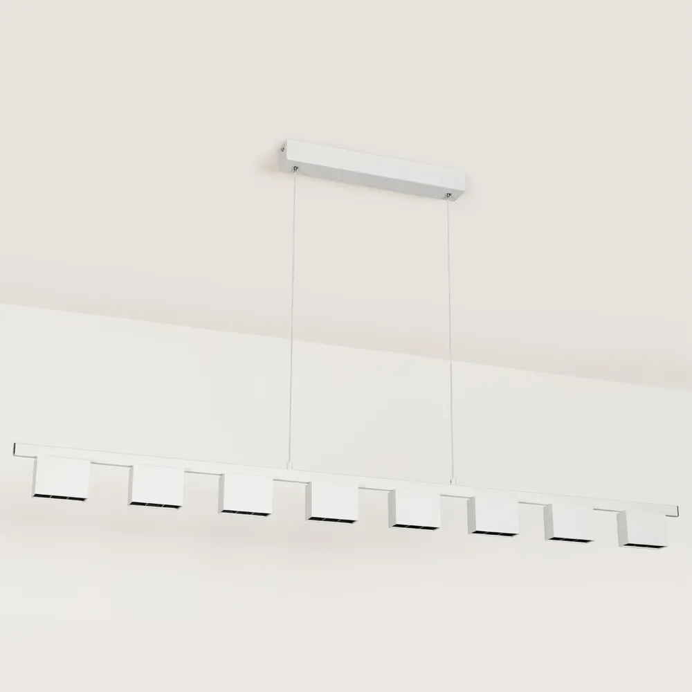 Подвесной светильник 8х6Вт, белый матовый корпус, материал алюминий. Цвет ТЕПЛЫЙ БЕЛЫЙ 3000K, св.поток 3900лм, CRI(Ra)>80, угол 34°. Размер 1200x60x1200мм. Питание AC220-240, драйвер в комплекте, 2 шт. (30-42V, 600mA), 48Вт.