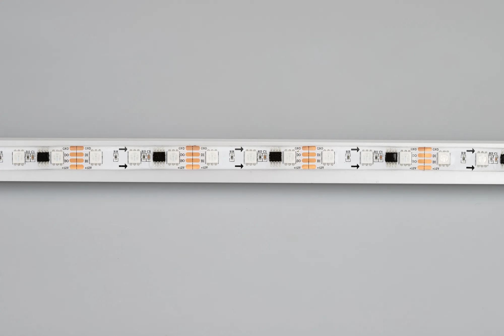 Герметичная лента “Бегущие огни” с драйвером 2818 (битый пиксель не влияет на передачу сигнала далее по ленте), с покрытием Silicone glue (IP65) - для применения в сухих и влажных помещениях, встроенный в ленту контроллер с циклическим автозапуском 300 программ (Auto mode) и подкл-ем внеш. контроллера, питание 12 В. Длина 5м, 300шт LED RGB 5060, 20 pixel/m (1 pixel = 3 LED). Макс. мощн-ть 12 Вт/м. Негерметичные прямоугольные коннекторы.