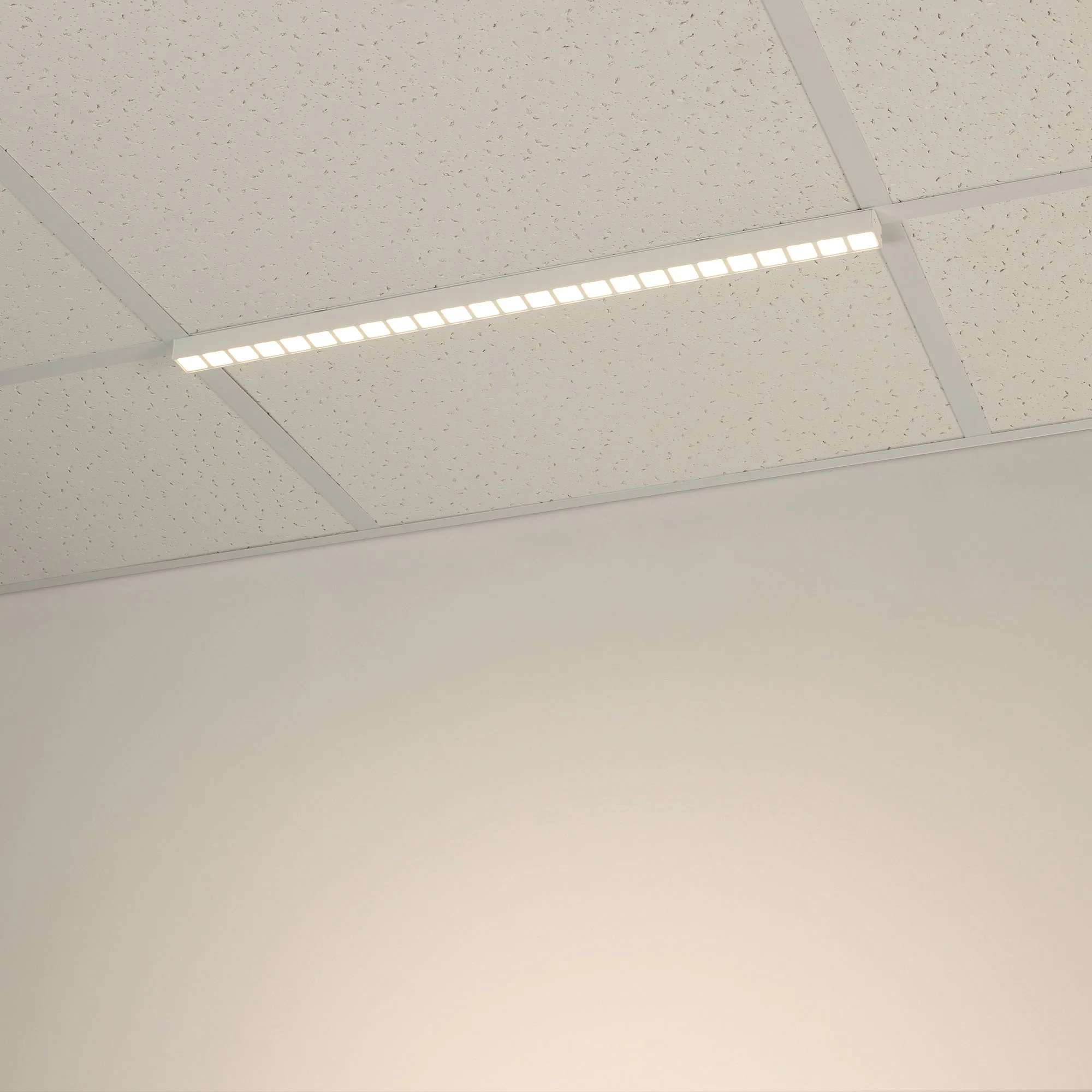 Светодиодный светильник для направляющих потолка Армстронг шириной 15 и 24 мм. Мощность 14 Вт, св. поток 1460 лм, 94 лм/Вт, теплый 3000K, CRI>80, угол 80°, напряжение питания 48 В. Белый квадратный корпус из алюминия, экран PC, степень защиты IP40. Размер: длина 600 мм, ширина 25 мм, высота 28 мм. Монтаж накладной. Драйвер поставляется отдельно.