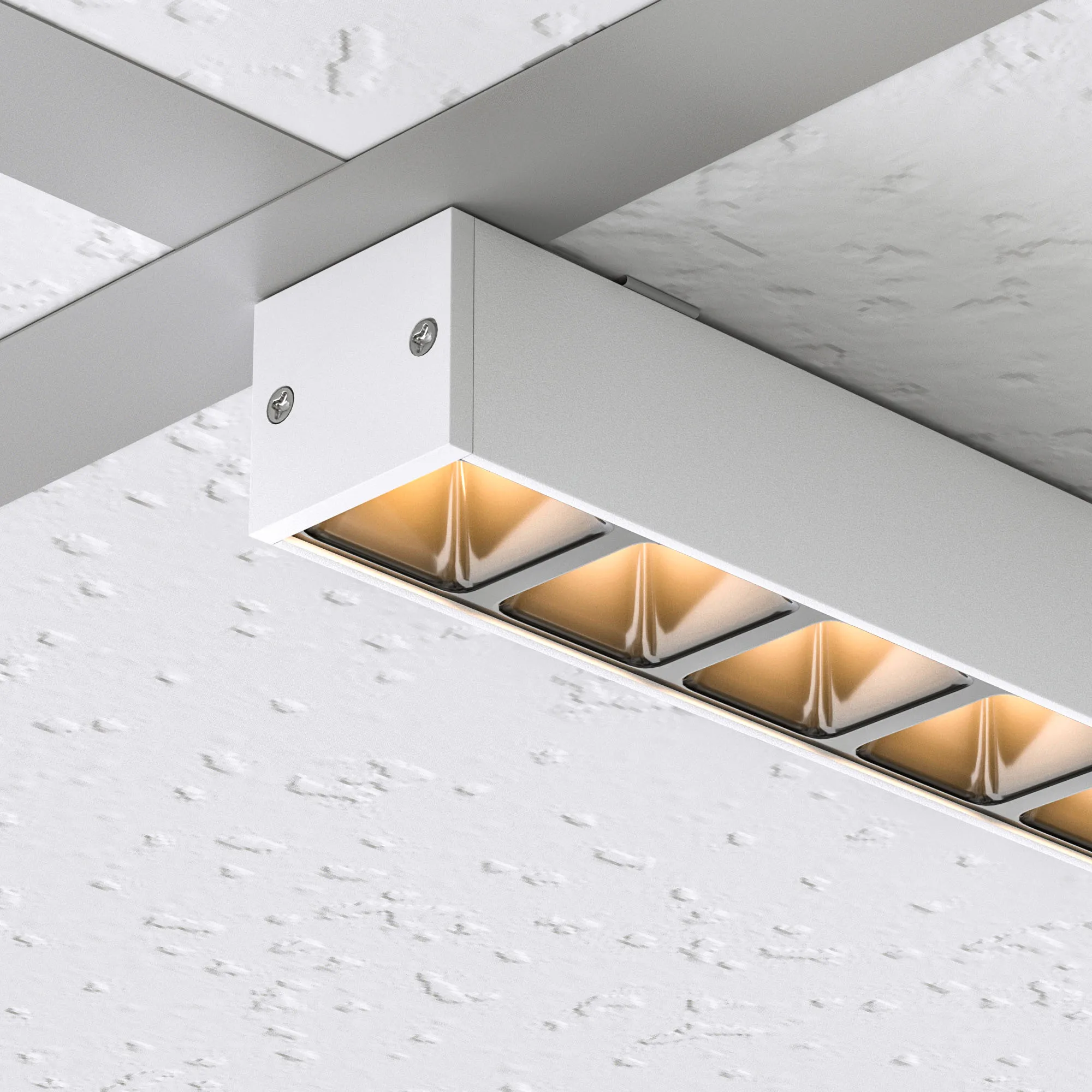 Светодиодный светильник для направляющих потолка Армстронг шириной 15 и 24 мм. Мощность 28 Вт, св. поток 2060 лм, 74 лм/Вт, теплый 3000K, CRI>80, угол 80°, напряжение питания 48 В. Белый квадратный корпус из алюминия, экран PC, степень защиты IP40. Размер: длина 1200 мм, ширина 25 мм, высота 28 мм. Монтаж накладной. Драйвер поставляется отдельно.