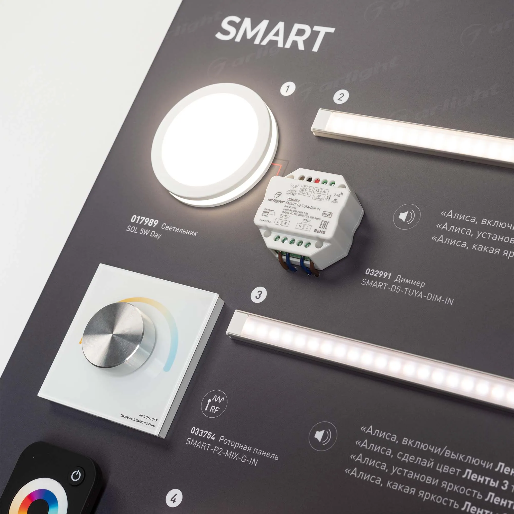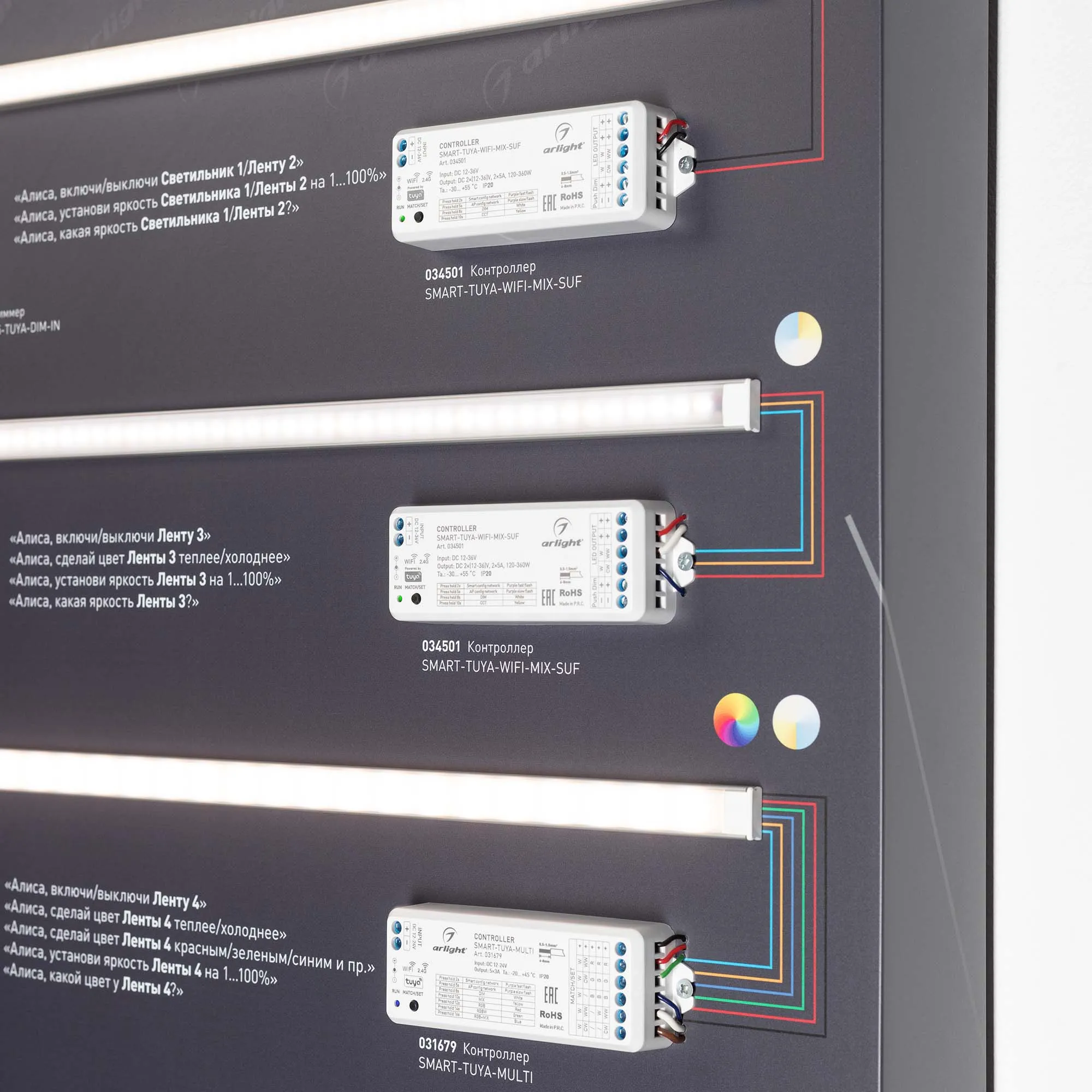 Наши специалисты знают все о продукции Arlight и с радостью помогут Вам выбрать комплектующие к товару "Стенд Системы Управления TUYA 1760x600mm (DB 3мм, пленка, лого) (Arlight, -)", или другие товары из раздела "Управление светом".