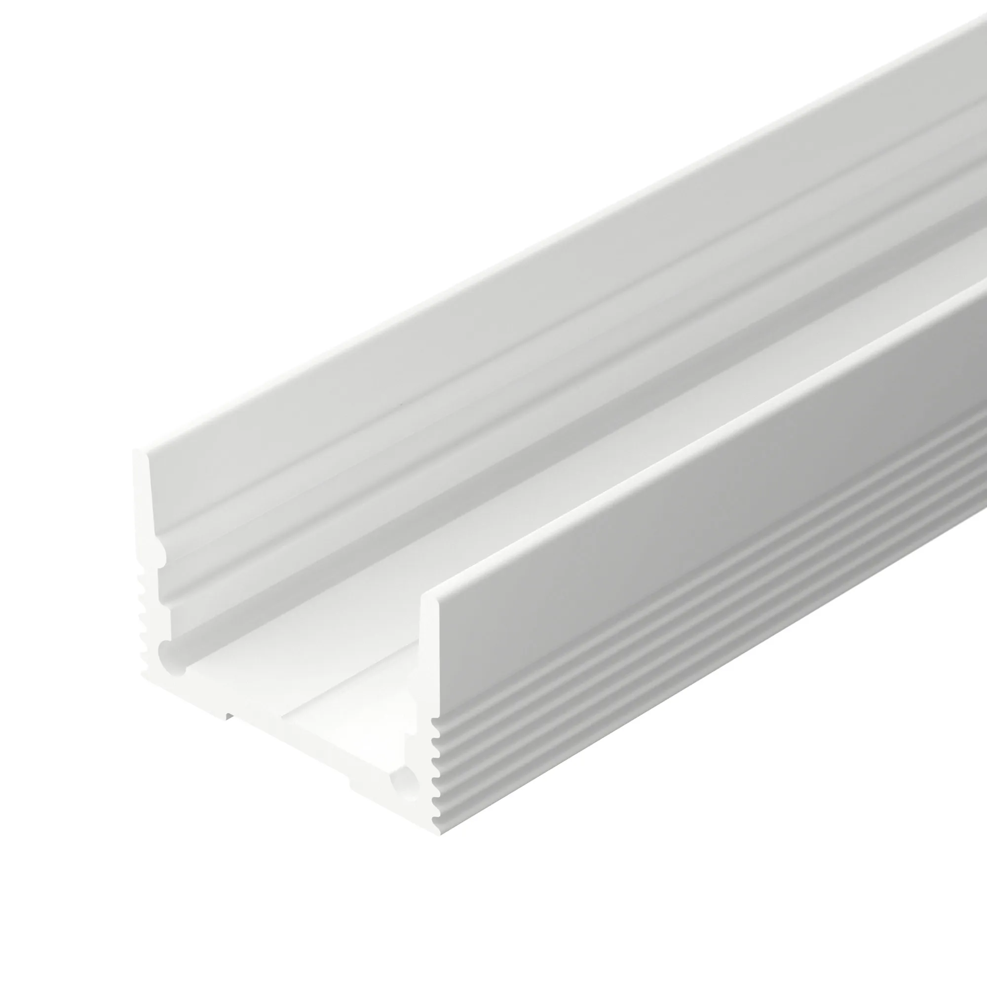 Алюминиевый профиль для светодиодных лент и линеек. Цвет - белый RAL9003 (порошковая окраска). Габаритные размеры (L×W×H): 2000x20x13 мм. Ширина площадки для ленты 15 мм. Экраны, заглушки и другие аксессуары приобретаются отдельно. Цена за 1 метр.