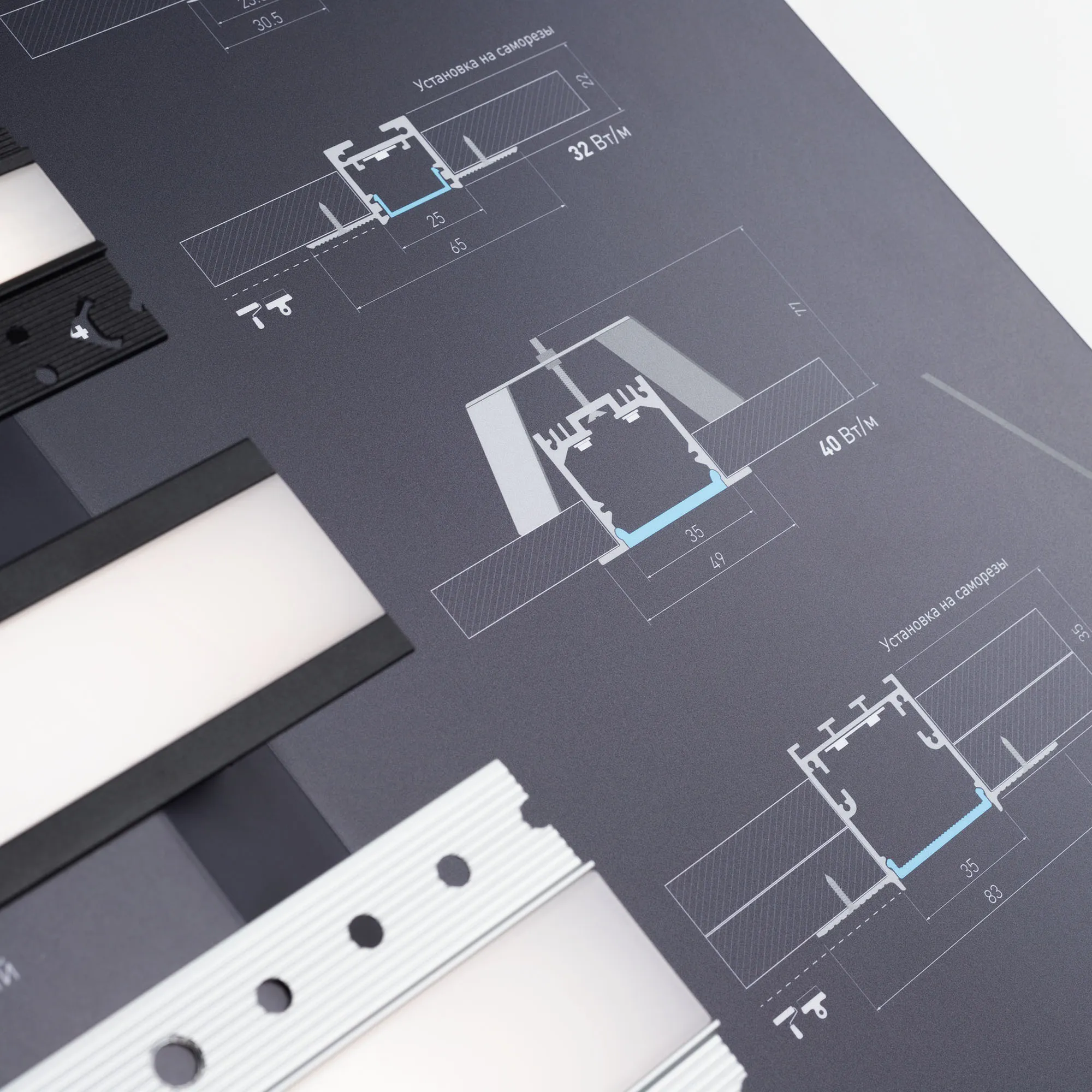 Встраиваемые алюминиевые профили серий S-LUX, KLUS, ARH с подсветкой и управлением яркостью. Материал - алюмобонд.