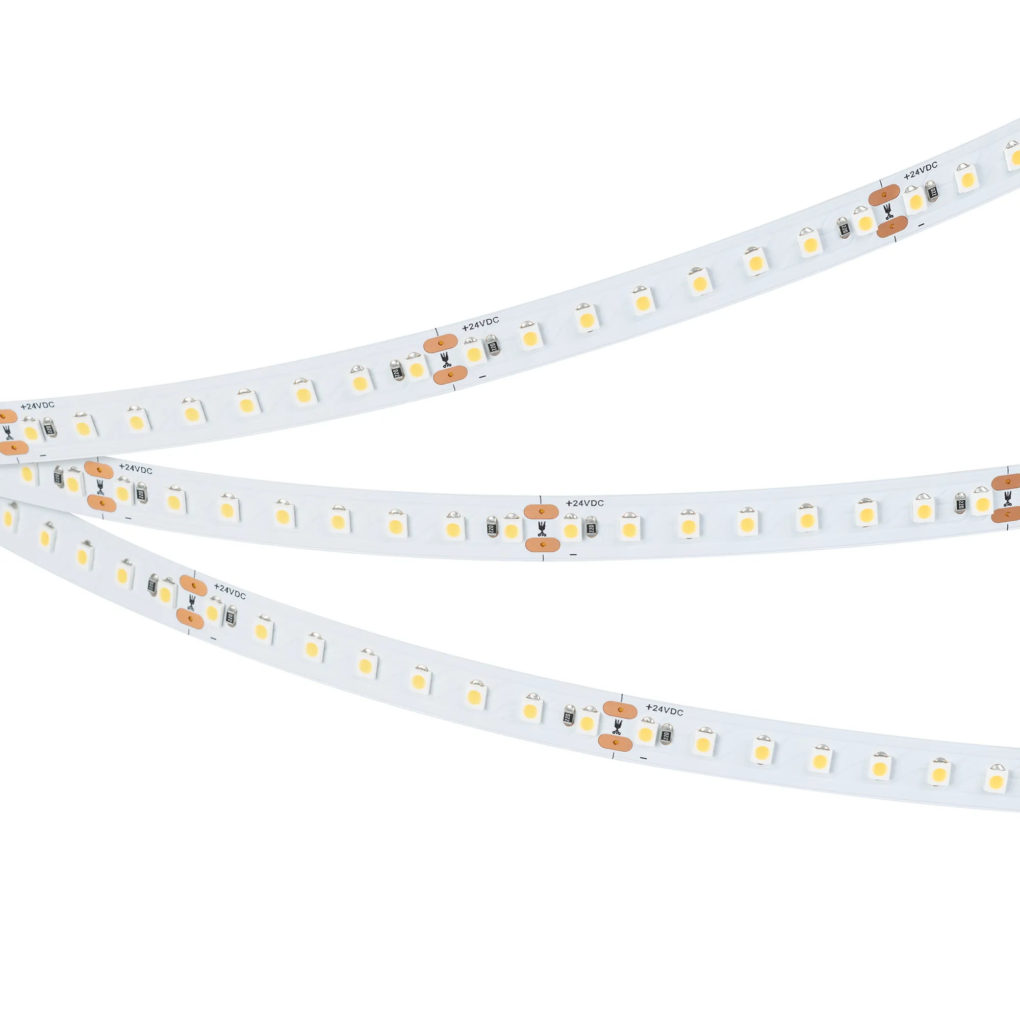 Светодиодная лента повышенной прочности TWIST серии A128. Светодиоды SMD 2835, 128 шт/м, белая плата шириной 10 мм, скотч 3M. Цвет ТЕПЛЫЙ 3500K, индекс цветопередачи CRI>90, угол 120°. Питание 24 В, мощность 10 Вт/м (50 Вт на 5 м). Размеры 5000x10x1.5 мм. Мин. отрезок 62.5 мм, 8 светодиодов. Цена за 1 м.