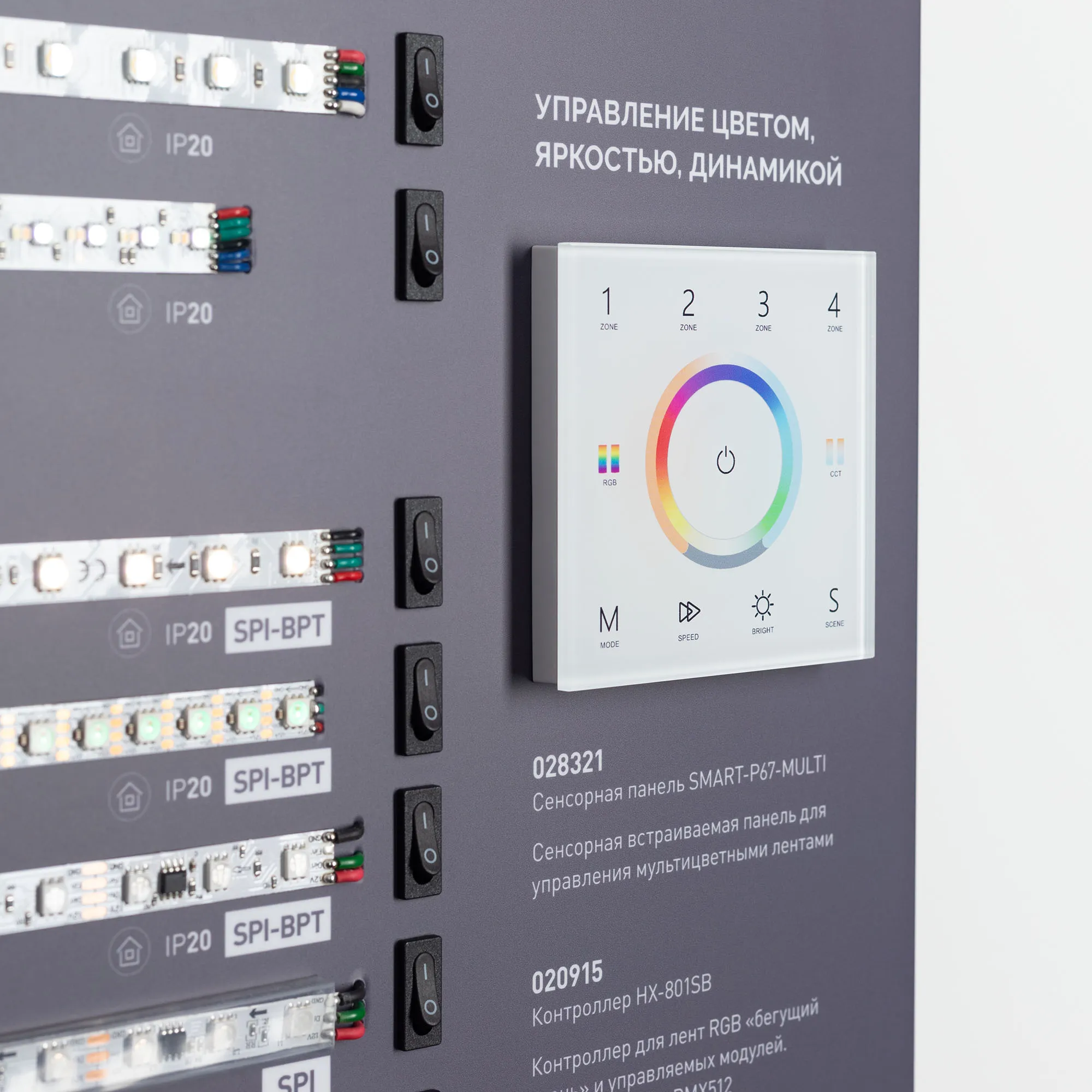 В магазине Мельковский Свет Вы можете купить "Стенд Ленты Мультицветные ARL-RGB-04-830x600mm (230V) (Arlight, -)"