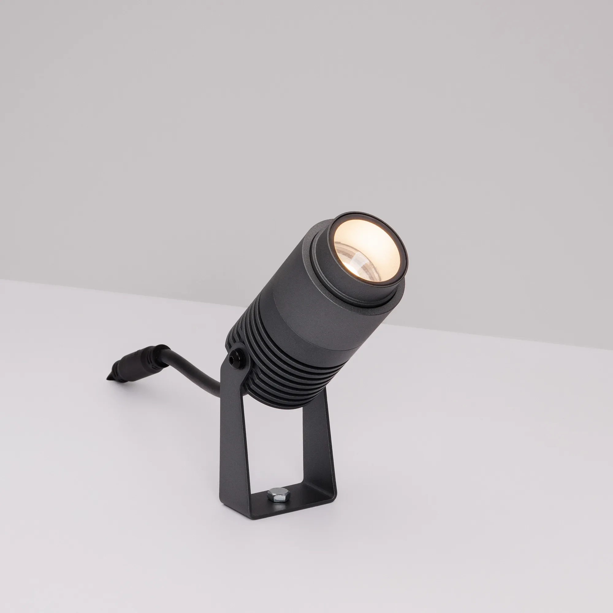 Уличный светодиодный прожектор, мощность 8Вт, регулируемый угол освещения 10-40°. Цвет ДНЕВНОЙ 4000К, световой поток для угла 10° 240 для угла 40° 420лм. Влагозащищенный корпус IP67 - темно-серый алюминий, экран из закаленного стекла. Угол поворота корпуса в вертикальной плоскости 135°. Питание 230В, мощность 8 Вт. Размеры DxH - Ø52x103мм. В комплекте 1м провод.
