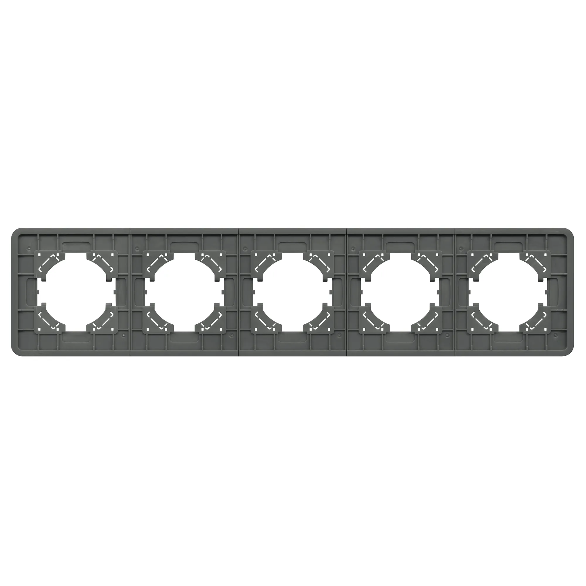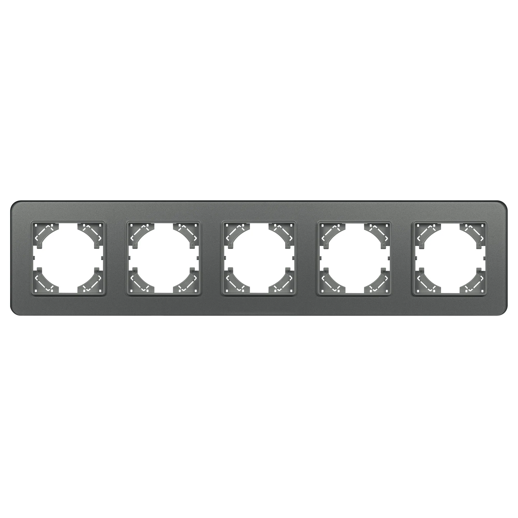 Рамка стеклянная на 5 постов, под встраиваемый механизм. Цвет - серый. Среднего уровня герметичности IP20. Ориентация монтажа - горизонтальная (основным ориентиром служат посадочные выступы для накладки механизма).