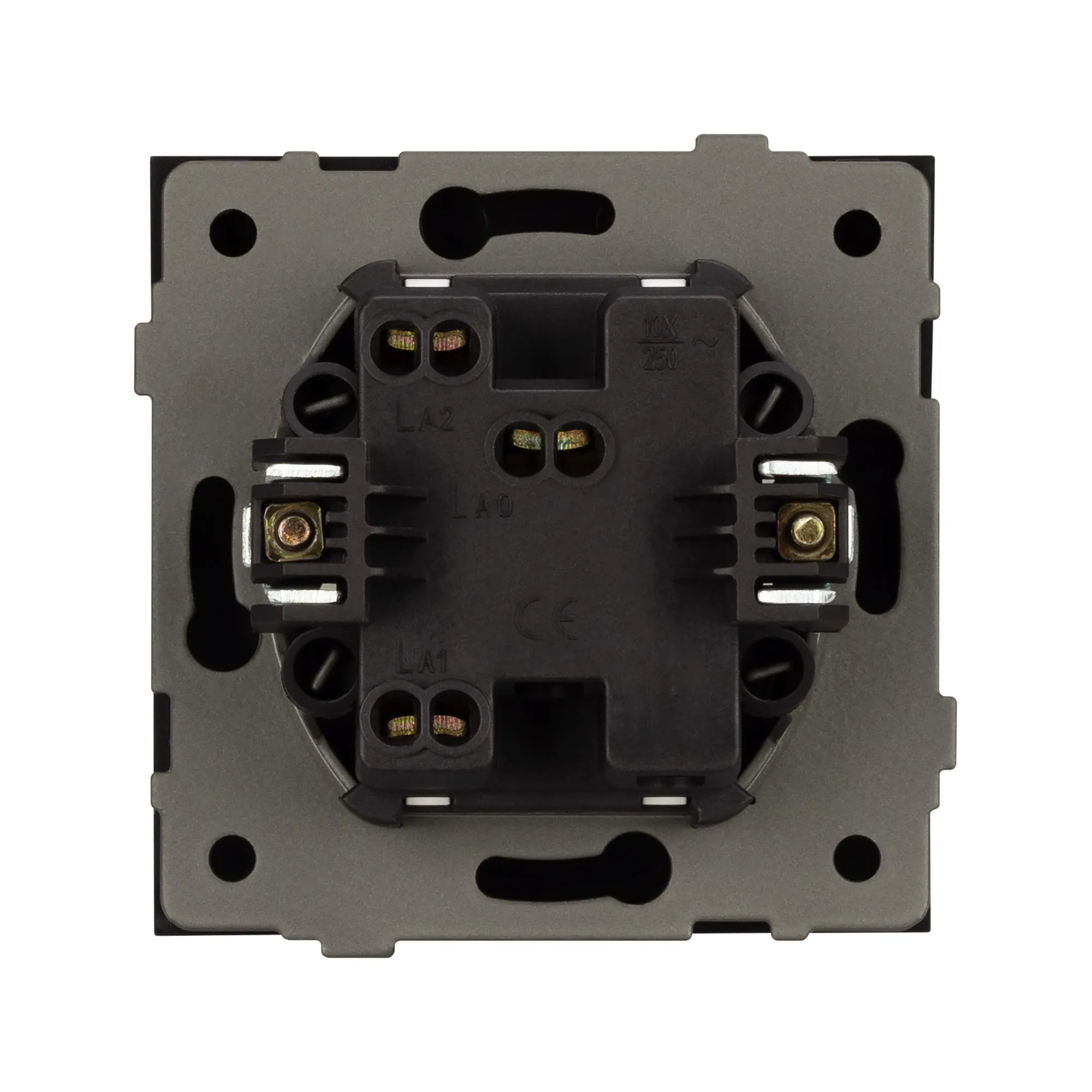 Механизм выключателя света клавишный на 1 пост 1 клавиша (проходной). Цвет - черный. Без фронтальной рамки. Уровень пылевлагозащиты IP20. Выключатель устанавливается в стандартный подрозетник круглого сечения диаметром 60мм.