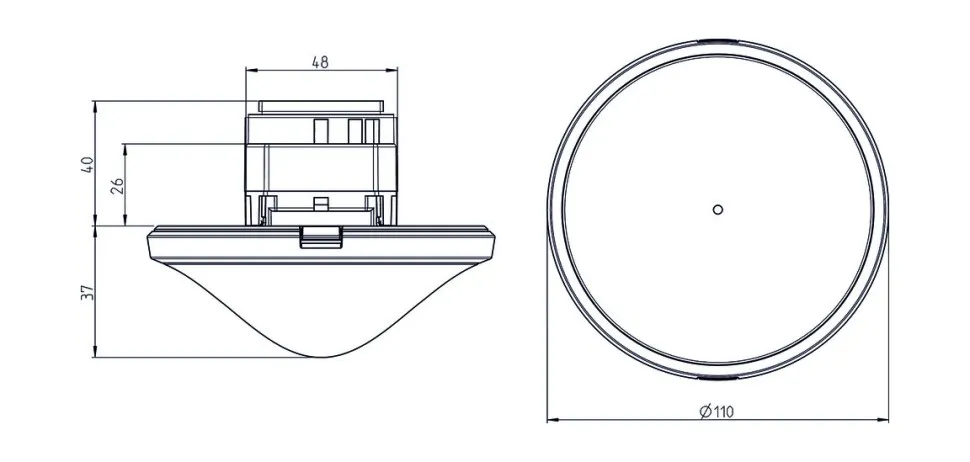 • Пассивный инфракрасный датчик присутствия потолочного монтажа